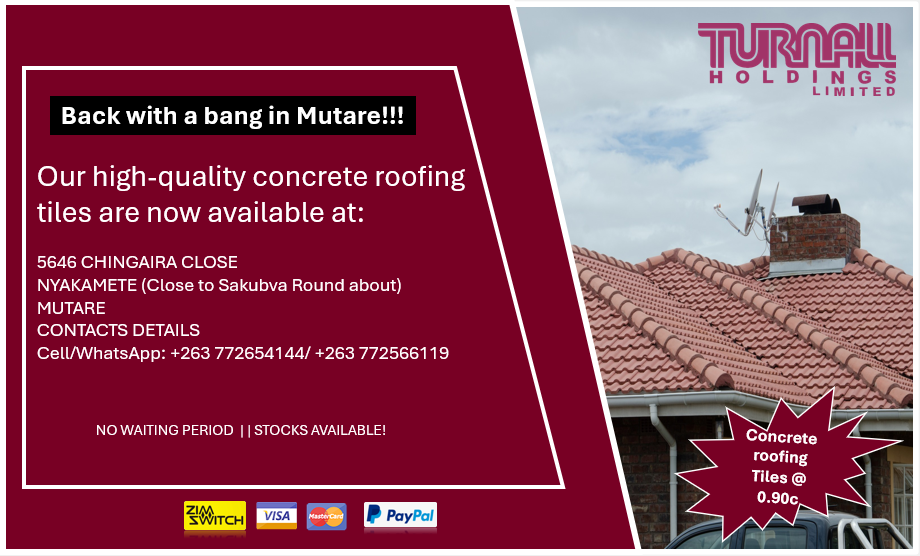 The best concrete roofing tiles in Zimbabwe for less. Made to last for generations. Do not miss this opportunity to roof with the best.